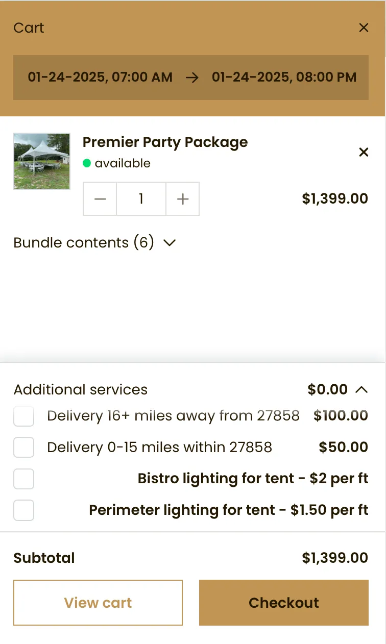 Planning your event just got easier! Our user-friendly online store lets you check availability, get instant quotes, and secure your rentals—all in one seamless experience. To ensure a smooth booking process, please follow the steps below.