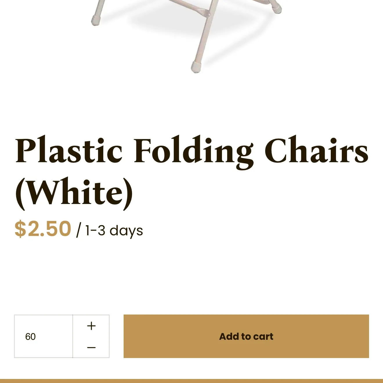 Next, simply add items (or a package) to your cart. You can also select the quantity of your items. For example, adding 60 chairs. You can also change quantities in your cart.